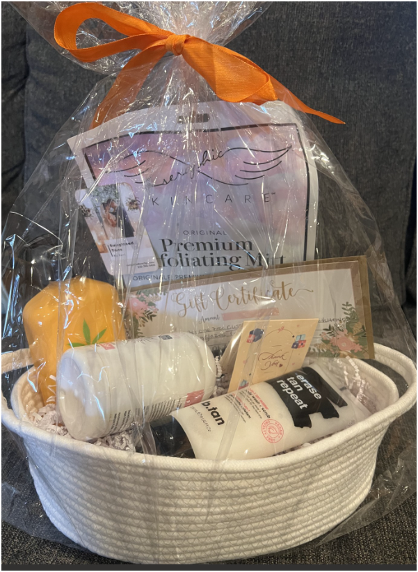 Give the gift of relaxation with this beautifully curated self‑care gift basket, perfect for birthdays, thank‑you, holidays, teacher appreciation, or anyone who deserves a little pampering. Wrapped in clear gift packaging and topped with a bright orange ribbon, this basket is ready to gift—no extra work needed! ✨ What’s Inside: Exfoliating Mask – A premium skincare treatment for soft, refreshed skin Hand & Body Lotion – Hydrating formula for silky smooth skin Lip Balm – Nourishing moisture to keep lips soft and protected Spa Accessories – Additional pampering essentials to elevate any at‑home spa moment Gift Certificate – A bonus treat for an extra luxurious experience All items arranged in a stylish, reusable white woven basket 💛 Perfect For: Spa lovers Teachers, nurses, and caregivers Birthdays & Mother’s Day Raffles, giveaways & appreciation gifts Anyone who could use a relaxing, thoughtful surprise This beautifully arranged basket offers everything needed for a calming, rejuvenating spa day at home. Treat someone special—or yourself!