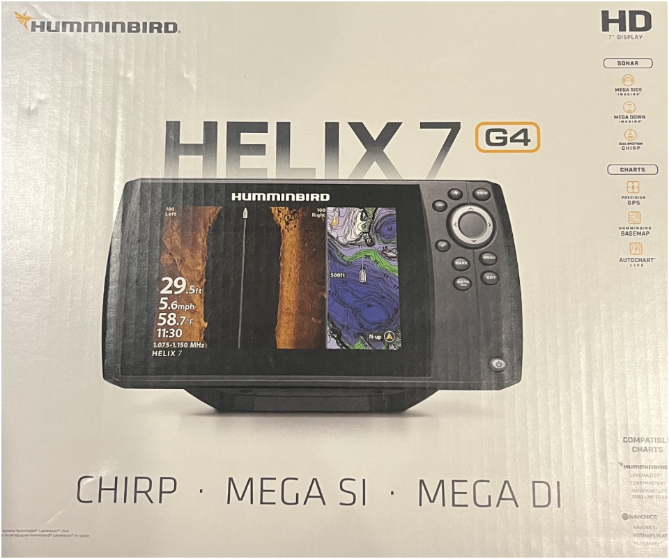 🎣 Humminbird HELIX 7 G4 – CHIRP • MEGA SI • MEGA DI Fish Finder & GPS Combo 🎣 Upgrade your time on the water with the Humminbird HELIX 7 G4, a powerful, easy‑to‑use fish finder designed to give anglers crystal‑clear detail and unmatched underwater visibility. This model includes advanced sonar technologies and a bright 7" HD display to help you locate structure, fish, and contours with precision. ✨ Features Include: 7" HD Display – Clear, vibrant, sunlight‑readable screen CHIRP Sonar – Sharp, accurate target separation MEGA Side Imaging (MEGA SI) – Ultra‑high‑detail views of structure to the left and right of your boat MEGA Down Imaging (MEGA DI) – Exceptional clarity directly beneath your boat GPS & Chart Compatibility – Supports detailed maps for navigation and structure hunting User‑Friendly Interface – Simple buttons for quick, one‑handed operation 💡 Perfect For: Freshwater & saltwater fishing Serious anglers wanting high‑resolution imaging Upgrading your boat with reliable, modern electronics This device helps you spend less time searching and more time catching. A must‑have tool for improving your fishing game!