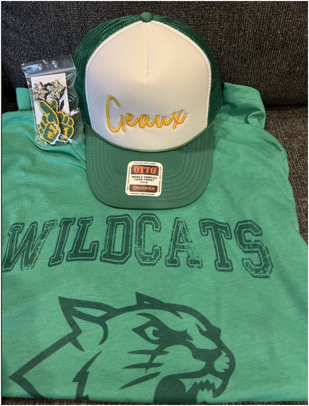 💚💛 Wildcats Spirit Bundle – Shirt, “Geaux” Trucker Hat & Earrings 💚💛 Show off your Wildcats pride in style with this spirited fan bundle! Perfect for students, parents, alumni, or anyone who loves supporting the Wildcats, this set includes coordinated green‑and‑gold gear that’s great for game days, pep rallies, or everyday wear. ✨ Bundle Includes: Wildcats Graphic Tee – Soft green shirt featuring a bold Wildcats logo and distressed‑style lettering “Geaux” Trucker Hat – Green and white OTTO trucker cap with “Geaux” embroidered in vibrant gold lettering Wildcats Earrings – Team‑themed earrings to complete your game‑day look with a touch of sparkle 💚 Perfect For: School spirit days Game‑day outfits Gifts for students, teachers, or fans Raffles, auctions, and themed baskets This Wildcats spirit set has everything you need to rep your team with pride—stylish, coordinated, and full of flair!