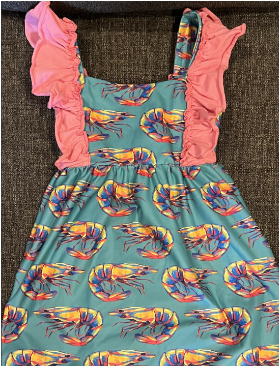 🦐 Colorful Shrimp‑Print Girls’ Dress – Ruffle Sleeve Southern Boutique Style 🦐 Bright, bold, and full of Louisiana charm! This adorable shrimp‑print dress is perfect for little ones who love fun, colorful outfits. With its vibrant teal background, multicolor shrimp pattern, and sweet pink ruffle sleeves, this dress is a playful blend of comfort and Southern style. ✨ Features: Eye‑catching multicolor shrimp print Soft pink ruffle straps for a cute, girly touch Lightweight, comfortable fabric ideal for warm weather Gathered waist for a flattering, twirl‑worthy fit Perfect for everyday wear or special outings 💗 Perfect For: Crawfish boils & coastal‑themed events Spring & summer outfits Photoshoots Boutique‑style gifting Festivals, picnics, and outdoor fun This unique and vibrant dress brings playful personality to any day—sure to become your little one’s new favorite!