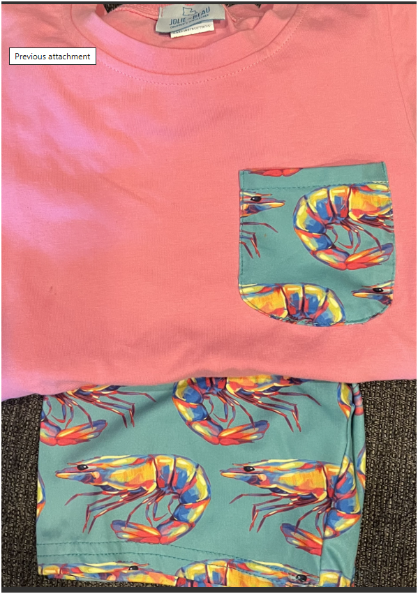 🦐 Kids’ Shrimp‑Print Pocket Tee & Shorts Set – Southern Coastal Style 🦐 Bright, playful, and full of Louisiana charm! This adorable two‑piece outfit features a soft pink tee paired with matching shrimp‑print shorts for a fun, coordinated look. The vibrant multicolor shrimp design adds a unique splash of personality, perfect for little ones who love bold and cheerful outfits. ✨ Set Includes: Pink Pocket Tee – Soft and comfy with a teal shrimp‑print pocket for a stylish pop of color Matching Shrimp‑Print Shorts – Vibrant multicolor shrimp pattern on a teal background, lightweight and easy to move in 💗 Perfect For: Summer days & outdoor play Beach trips & coastal vacations Family gatherings & seafood boils Everyday comfort with boutique flair This eye‑catching set is both cute and comfortable—sure to become a new favorite in your little one’s wardrobe!
