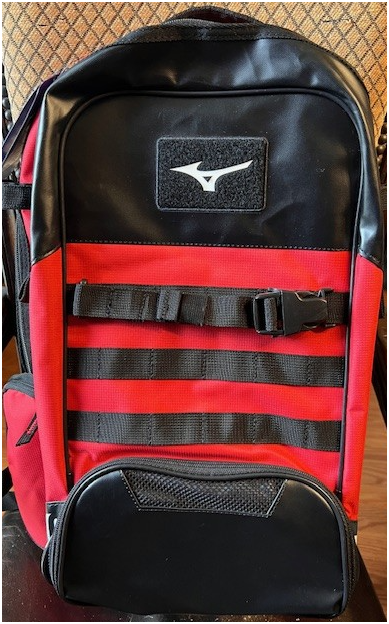🎒 Mizuno Red & Black Baseball/Softball Equipment Backpack This durable Mizuno baseball/softball backpack is designed to carry everything an athlete needs for practices, tournaments, and game days. Built with rugged red‑and‑black materials, it features multiple storage panels, bat sleeve areas, and a spacious main compartment. Its utility‑strap front design is ideal for attaching extra gear, making it both functional and stylish. ✨ Features Strong and durable construction suitable for baseball or softball players Multiple front utility straps for attaching batting gloves or accessories Large main compartment for helmet, glove, or clothes Side pockets for bats, water bottles, or gear (depending on model) Cushioned shoulder straps for comfortable carrying Professional Mizuno aesthetic with bold team‑friendly colors This backpack is perfect for players who need a reliable, spacious bag that handles everyday athletic use.
