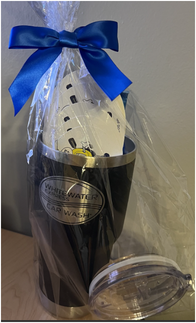 White Water Express Car Care Gift Set – Description This beautifully wrapped Car Care Gift Set from White Water Express is the perfect treat for anyone who loves keeping their vehicle spotless. Nestled inside a sleek, stainless‑steel White Water Express travel cup, this bundle features five (5) Ceramic Car Wash passes, offering premium shine, ceramic protection, and a showroom‑ready finish with every wash. The gift set also includes a fresh air freshener and a soft detailing towel, making it a complete package for on‑the‑go cleanliness and comfort. A thoughtful, practical, and high‑value gift for any driver who loves that “just‑washed” feeling.